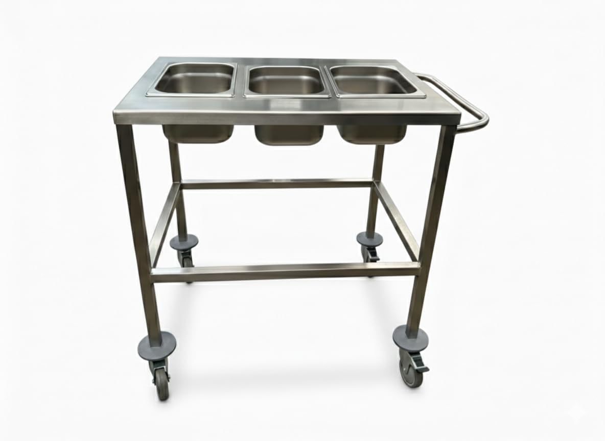 • This 1/3 Gastronorm salad trolley is built from tough 304 grade stainless steel, making it both durable and easy to clean.